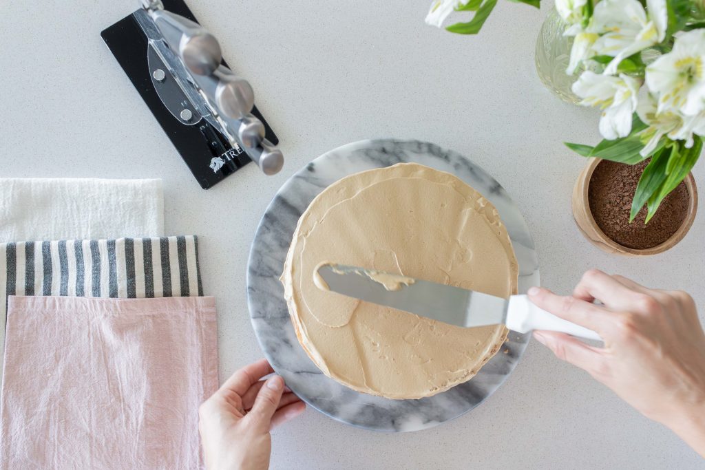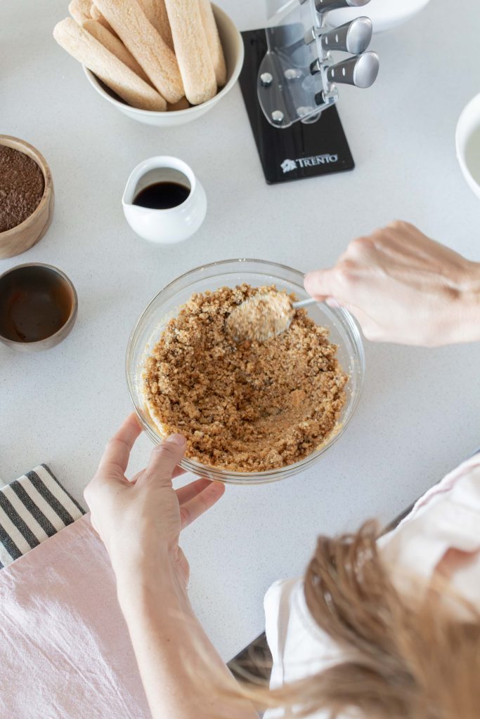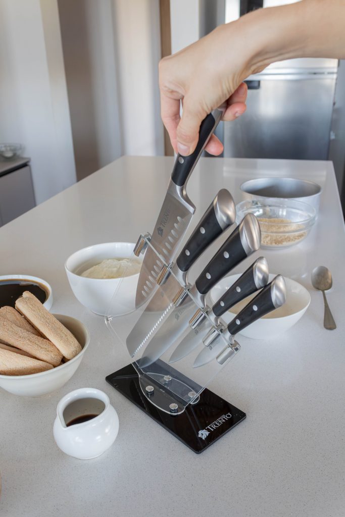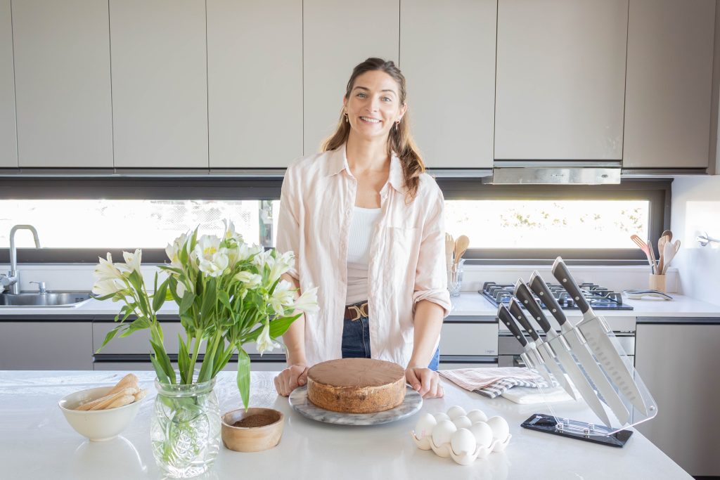 Un Cheesecake Tiramisú preparado junto a Agus Chinelli, con la ayuda de los cuchillos Trento, que acompañan cada paso en la cocina con facilidad y precisión.