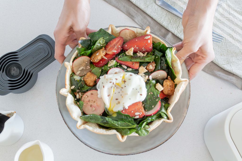 Casabutik nos invita en esta primavera a hacer esta receta fresca, liviana y llena de color, una ensalada en canasta de masa de tarta perfecta para eso!