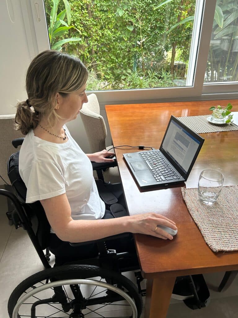Hoy, su vida transcurre en silla de ruedas. Lejos de ser solo una limitación, se convirtió en una puerta hacia otra forma de vincularse con el mundo.“Estar en silla de ruedas me generó un acercamiento distinto a las personas”, cuenta.