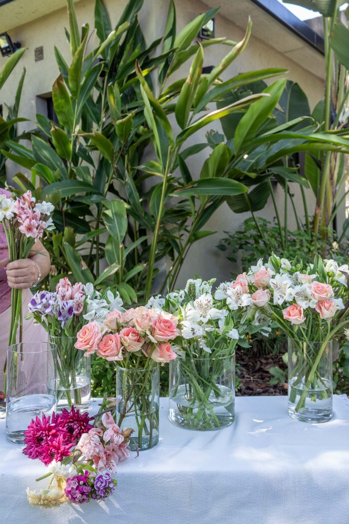 El secreto número uno es cuidar la altura del arreglo floral. La regla es simple: el arreglo final no puede superar la altura de tu mano. Así evitás que las flores tapen a los comensales y creás una mesa armónica, donde todos puedan verse y disfrutar la charla.