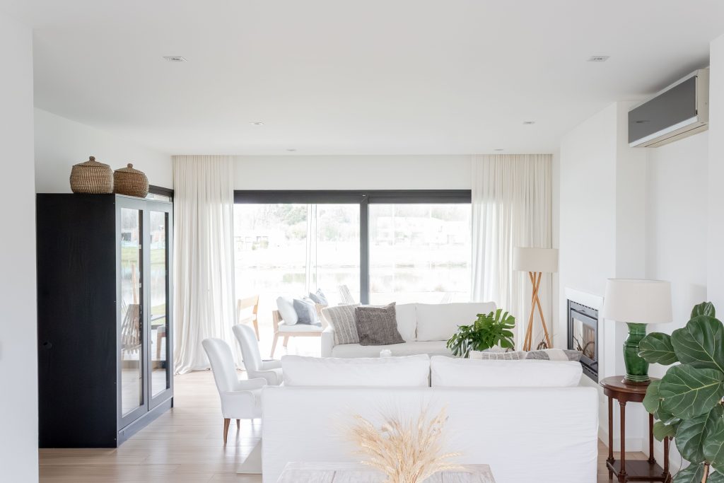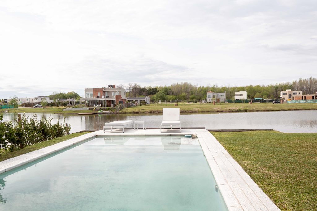 Además de su diseño interior, la conexión con el exterior fue clave desde el inicio. Grandes ventanales integran la galería, el jardín y la laguna, generando una sensación de apertura y continuidad visual. La luz natural atraviesa toda la casa durante el día, reforzando esa idea de fluidez y armonía con el entorno que define la vida en Santa Ana.