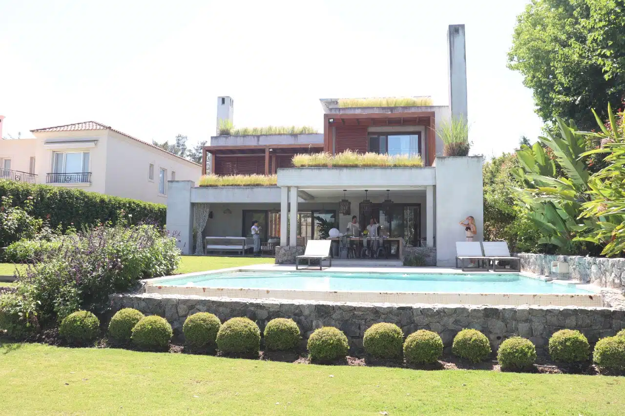 Si hay algo cautivante de este hogar es la increíble galería que se dividió en dos. Por un lado, un living y por el otro, la parrilla y una importante mesa. Luego, le sigue el jardín lleno de vegetación y una gran pileta.